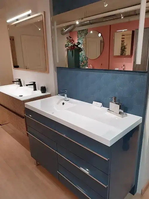Laissez place à vos envies en choisissant parmi les différentes finitions de laques mates ou brillantes ou décor bois, les modèles de poignées, vasques, colonnes, commodes, armoires ou encore miroirs assortis à nos gammes.
